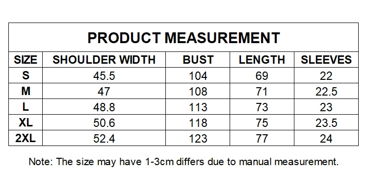 Size Length Width Sleeve Center Back